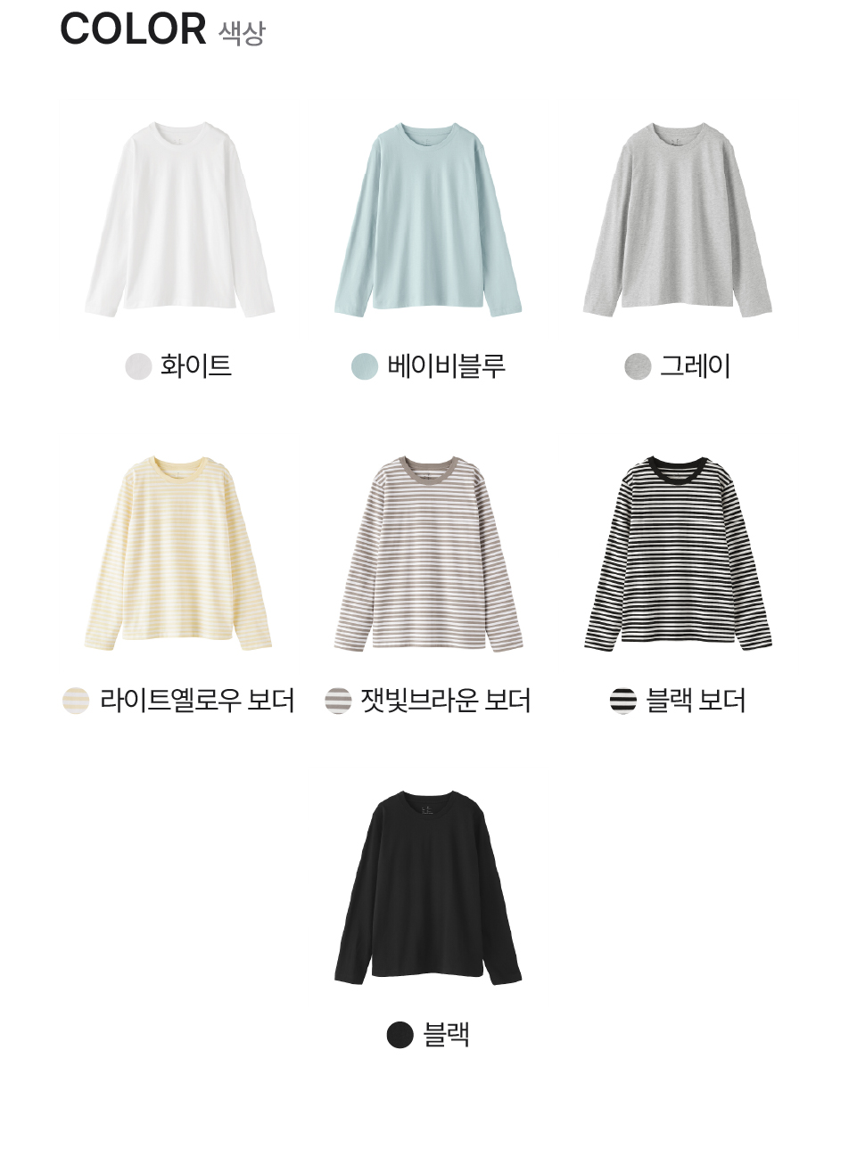 잿빛브라운 보더,블랙 보더,베이비블루,라이트옐로우보더,화이트,그레이,블랙