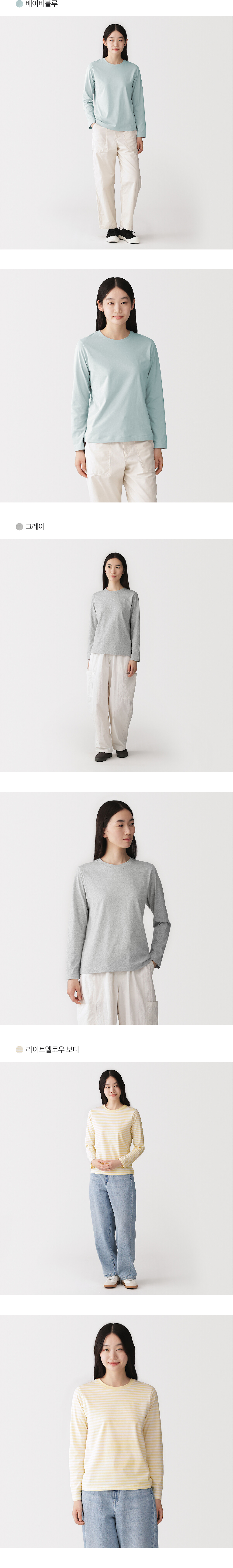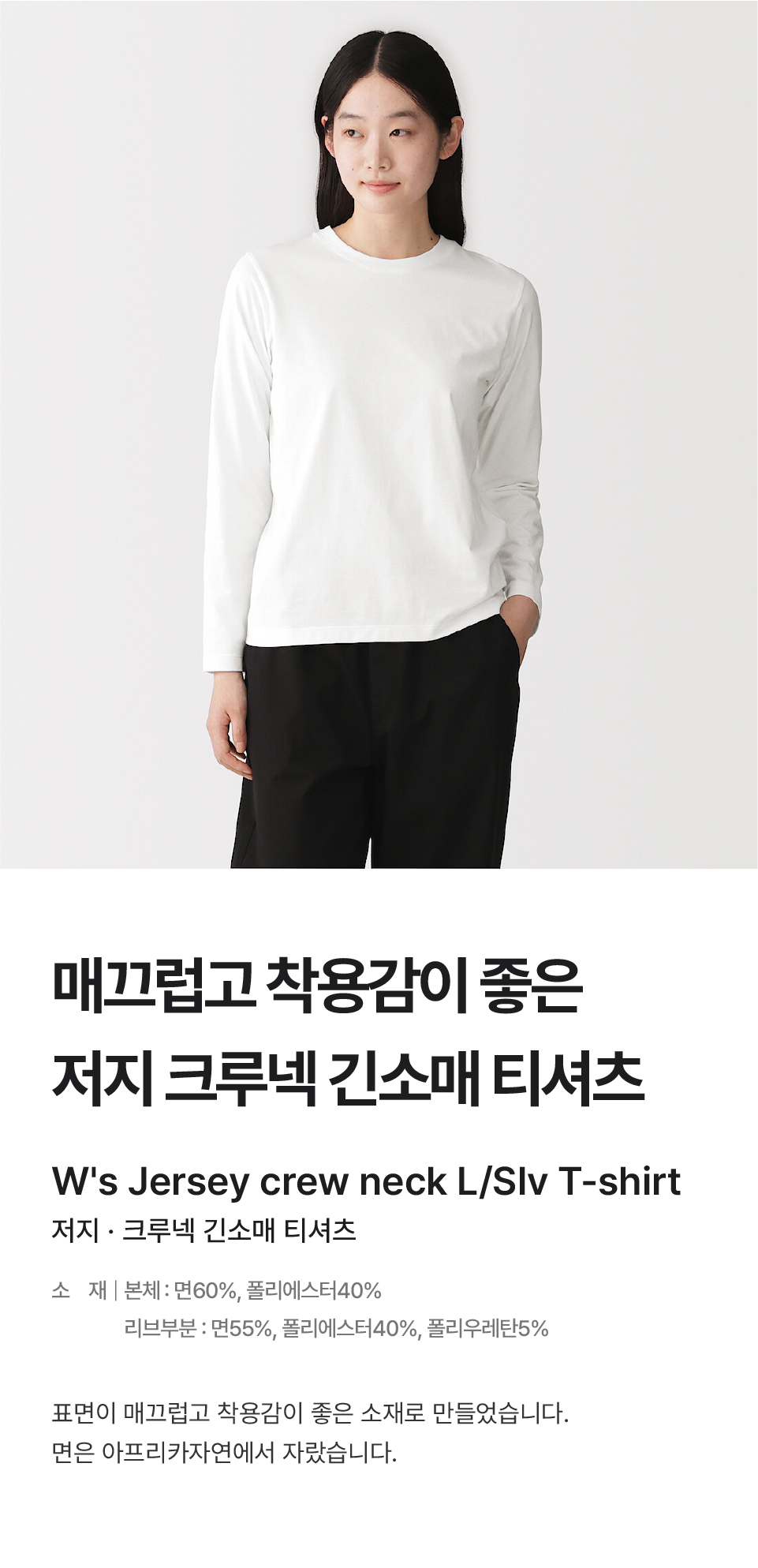 저지 크루넥 긴소매 티셔츠