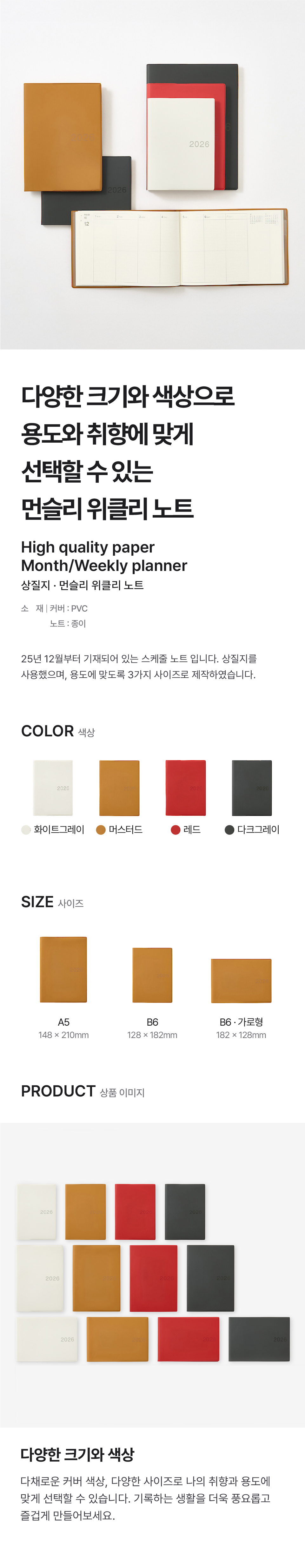 상질지 먼슬리 위클리 노트 · A5 · 머스터드/4550584919046
