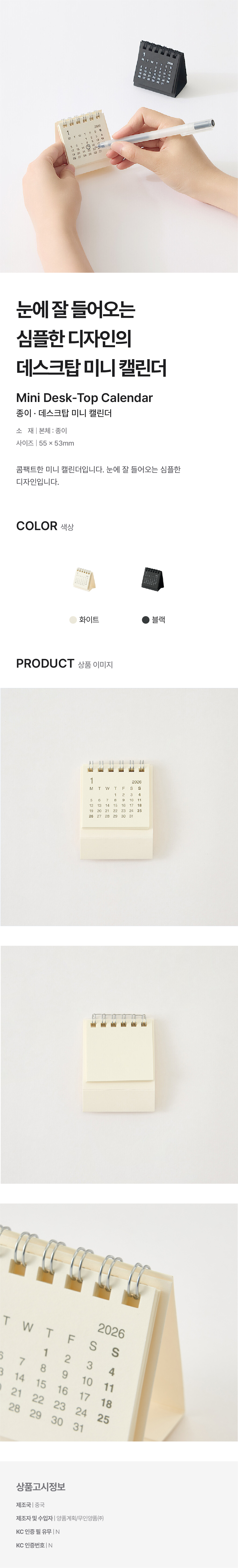 종이 데스크탑 미니 캘린더 화이트/4550584919404
