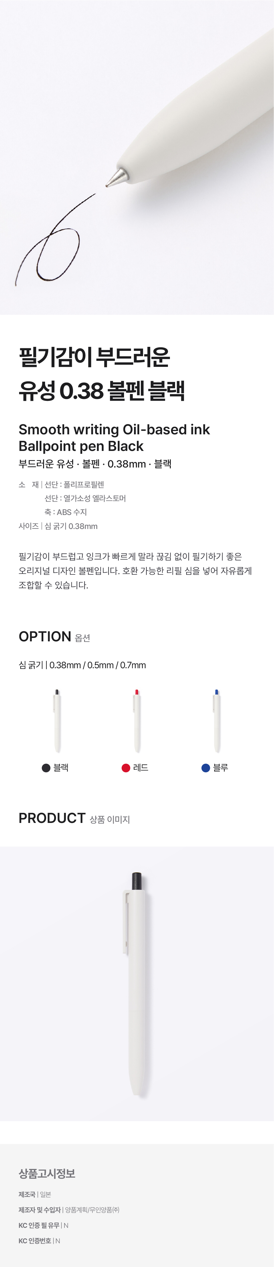 부드러운 유성 볼펜 블랙 0.38mm/4550583768126