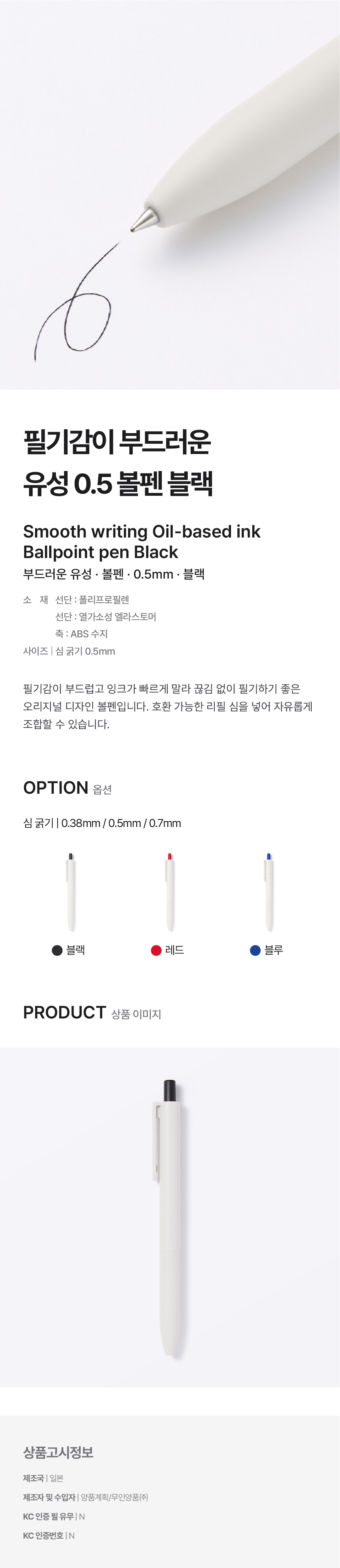 부드러운 유성 볼펜 블랙 0.5mm/4550583768157