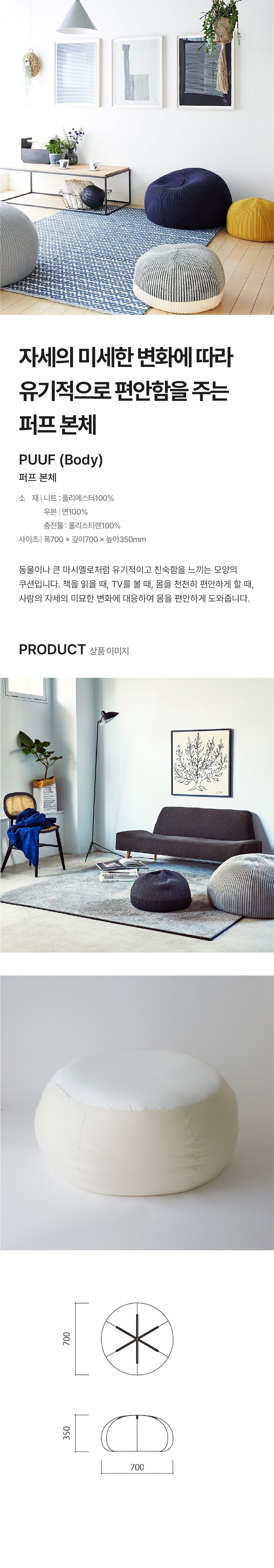 원단: 니트 · 우븐: 폴리에스터 100%, 충전재: 폴리스티렌 100%
