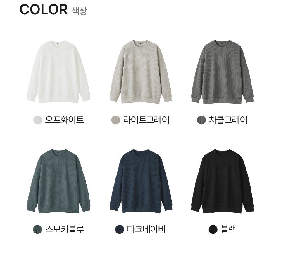 라이트그레이,스모키블루,오프화이트,다크네이비,블랙,차콜그레이