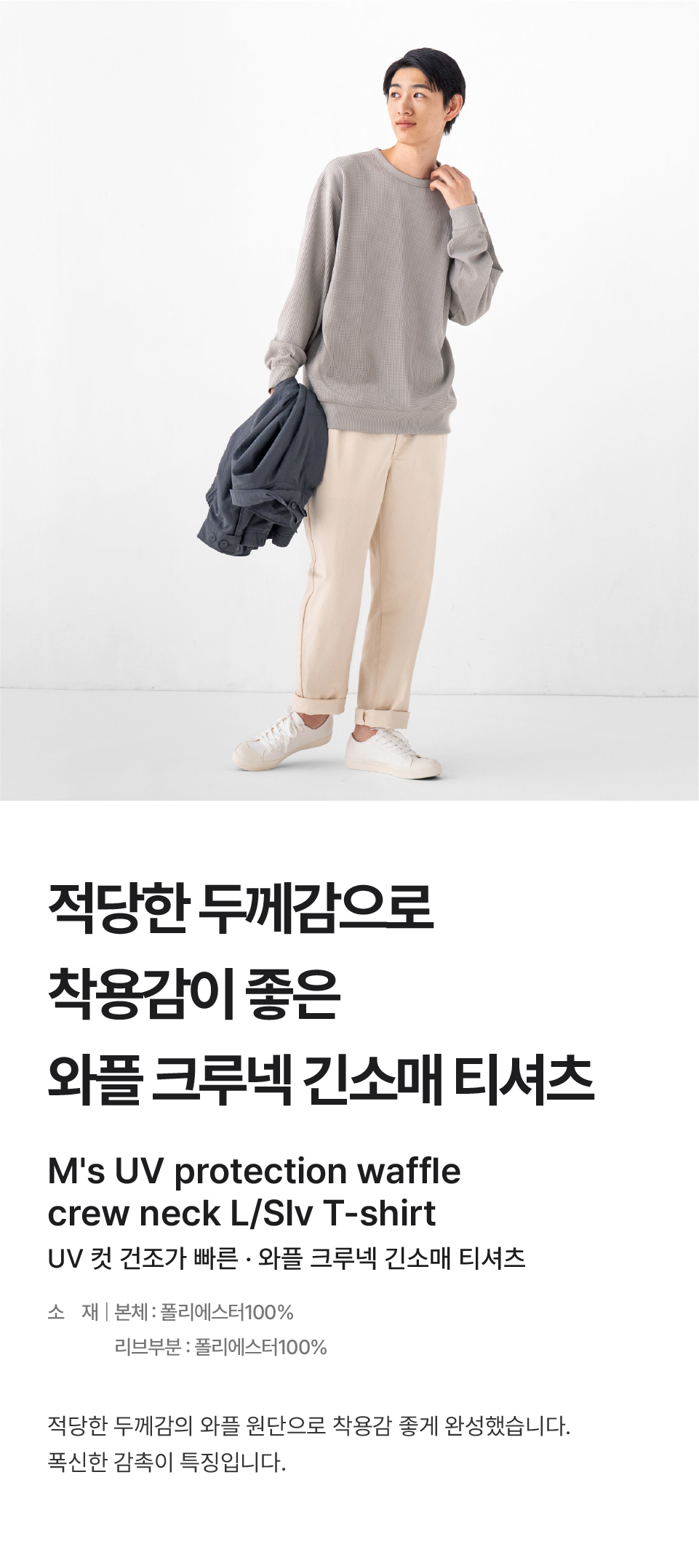 UV 컷 건조가 빠른 와플 크루넥 긴소매 티셔츠/AB1OHA6S