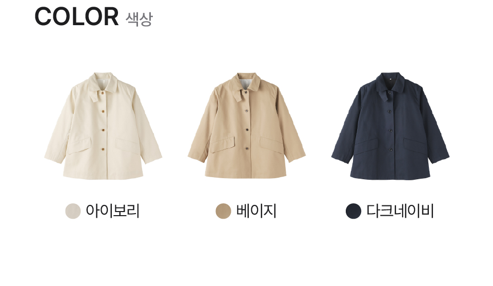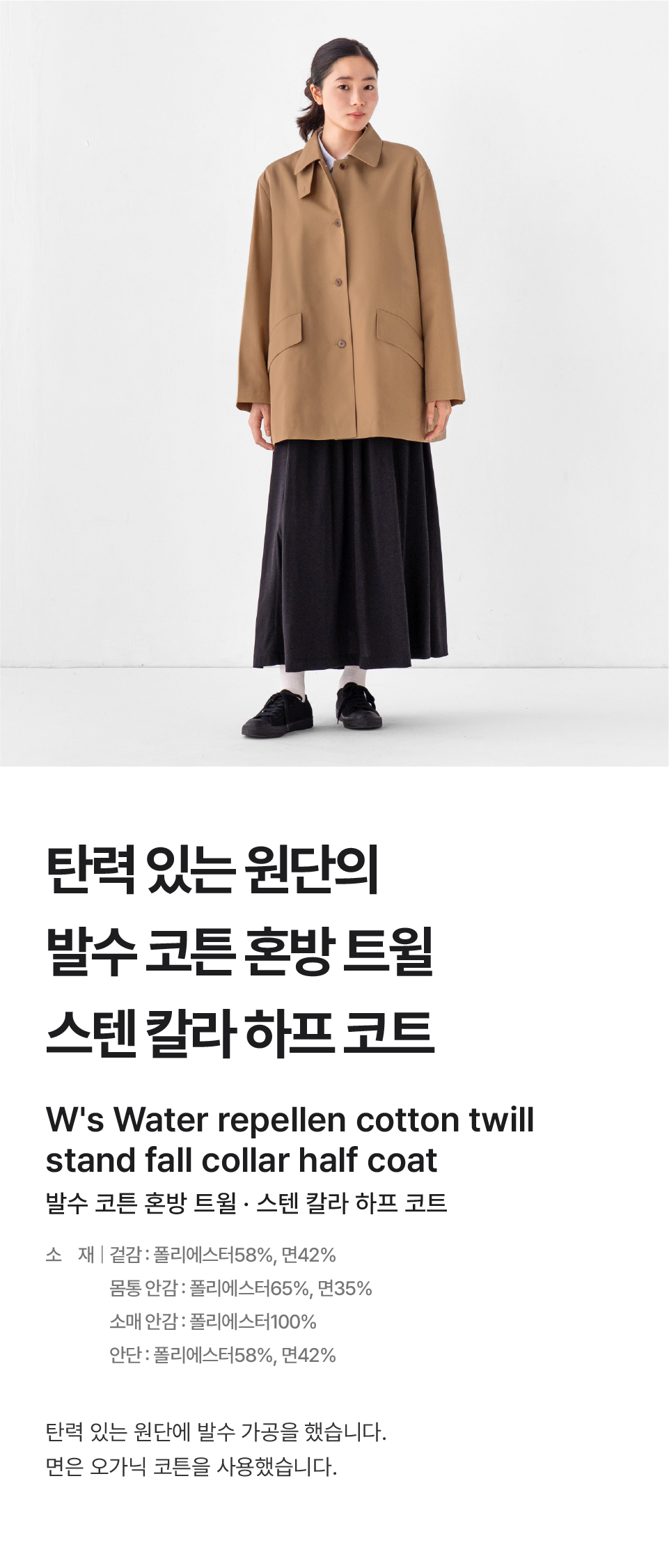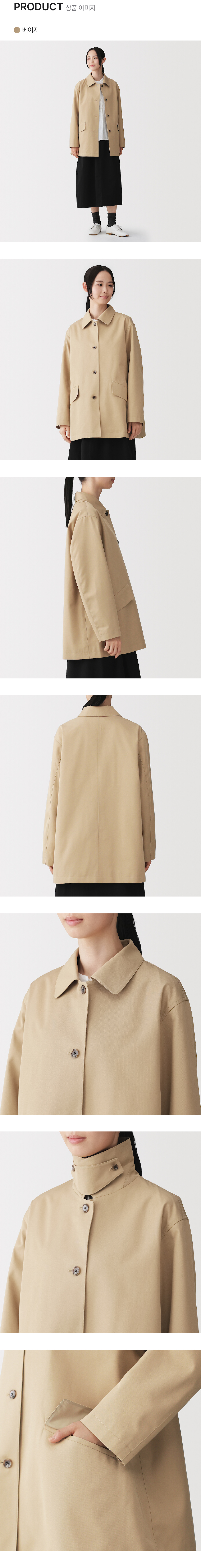 발수 코튼 혼방 트윌 스텐 칼라 하프 코트/BD12BA6S