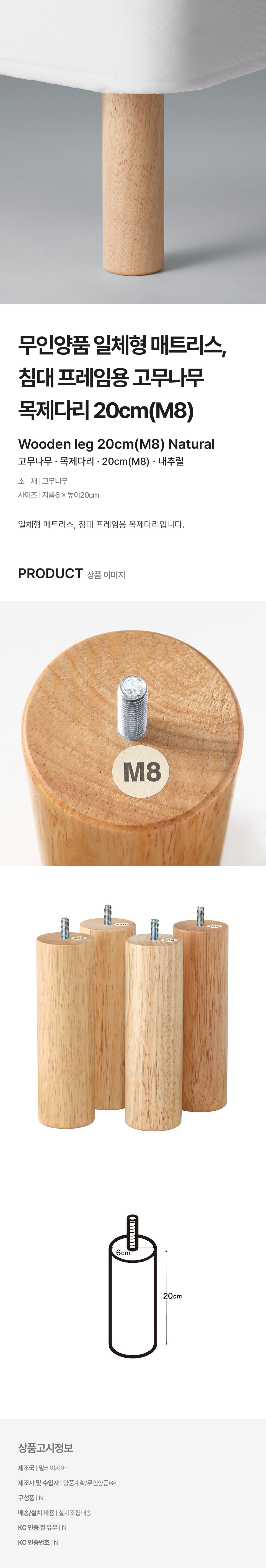 고무나무 목제다리ㆍ20cm(M8)/4550584410543