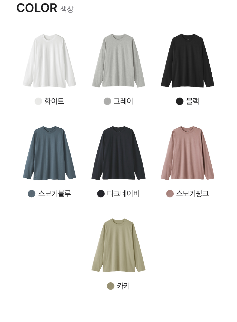 화이트,카키,스모키핑크,블랙,스모키블루,그레이,다크네이비