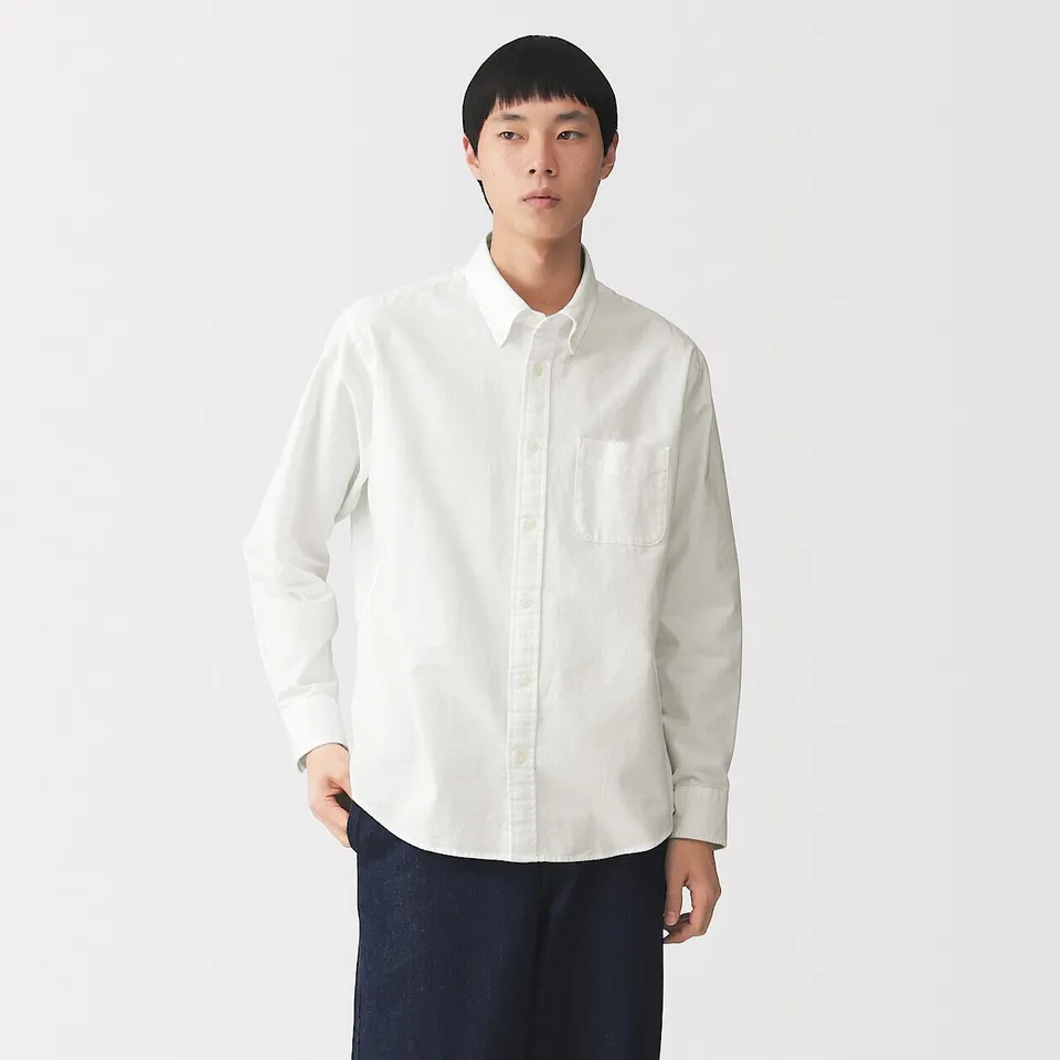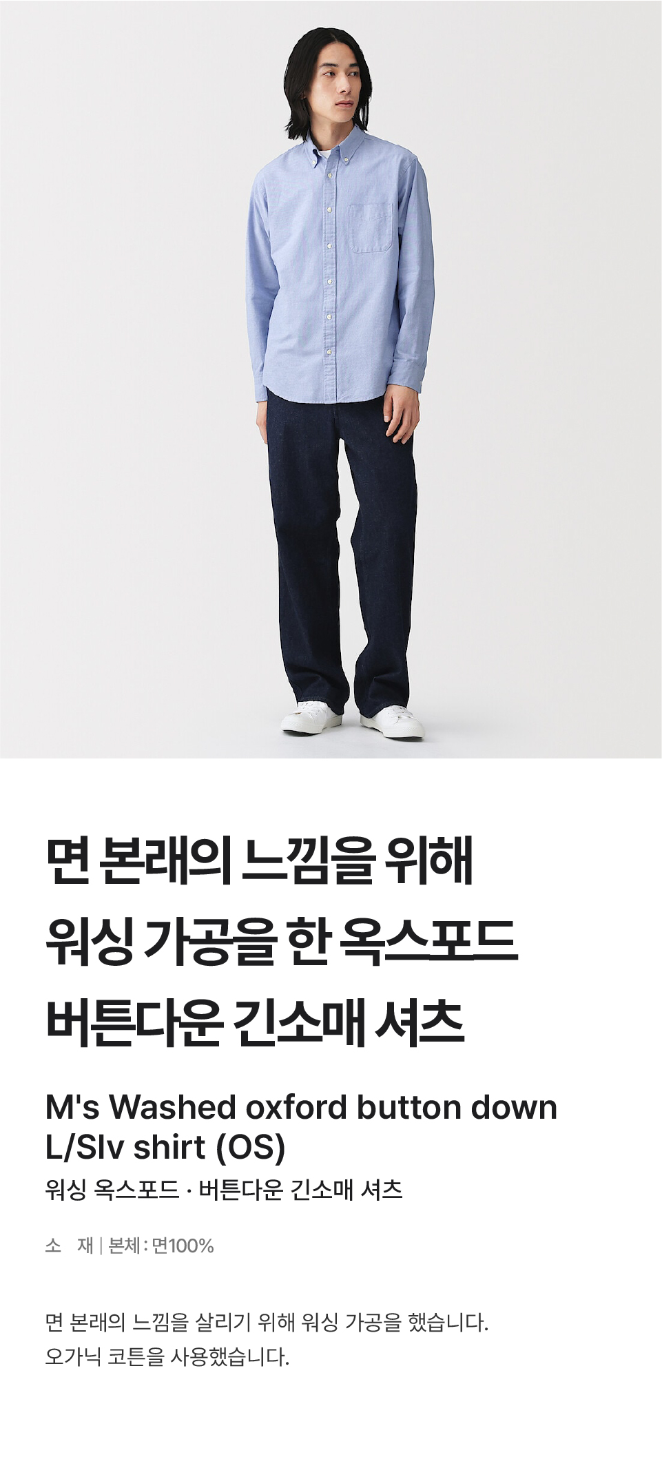 워싱 옥스포드 버튼다운 긴소매 셔츠