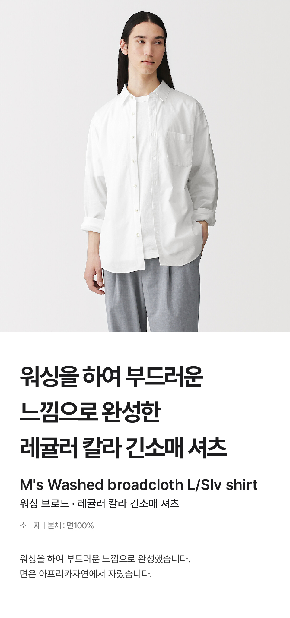 워싱 브로드 레귤러 칼라 긴소매 셔츠/AC2WPA6S