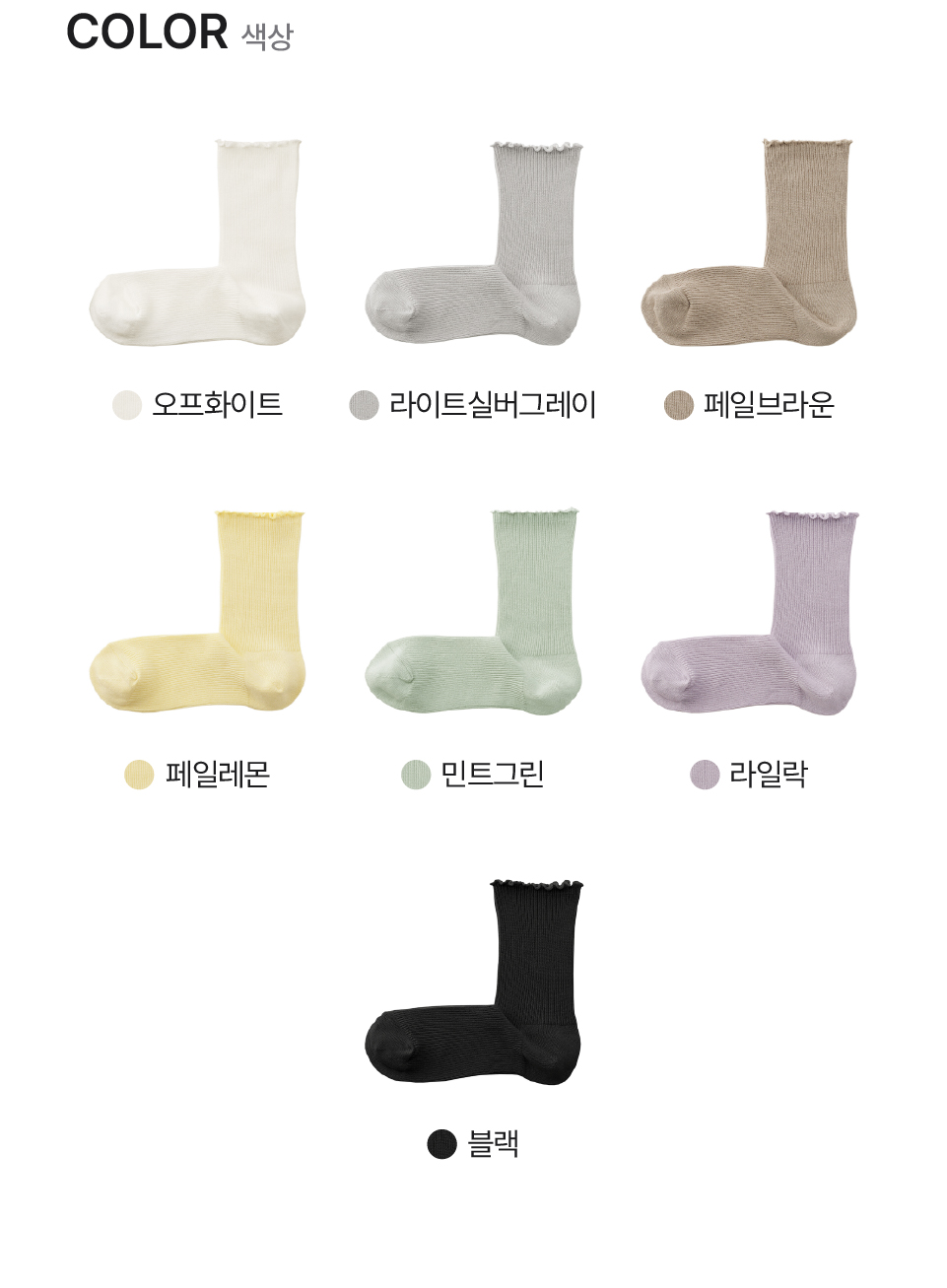 페일레몬,민트그린,라일락,오프화이트,라이트실버그레이,블랙,페일브라운