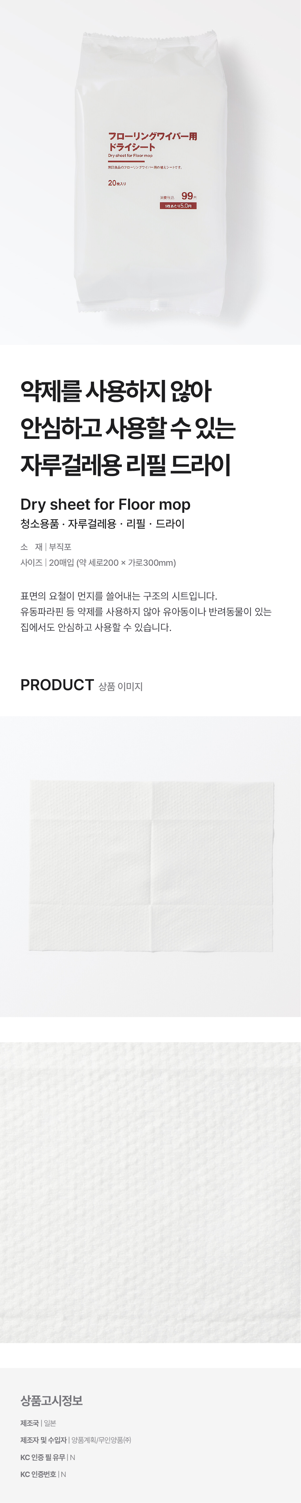 청소용품 자루걸레용ㆍ리필ㆍ드라이ㆍ20매입/4548076418726