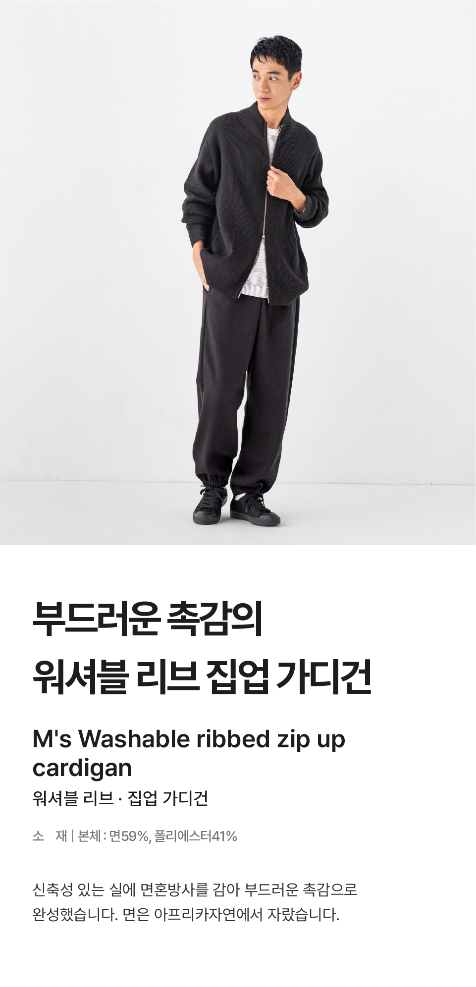 워셔블 리브 집업 가디건/AA0UMA6S