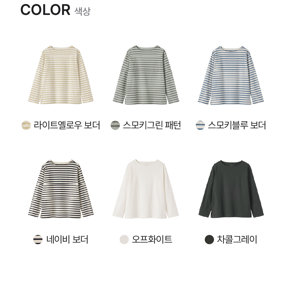 네이비 보더,오프화이트,차콜그레이,스모키그린 패턴,스모키블루 보더,라이트옐로우보더