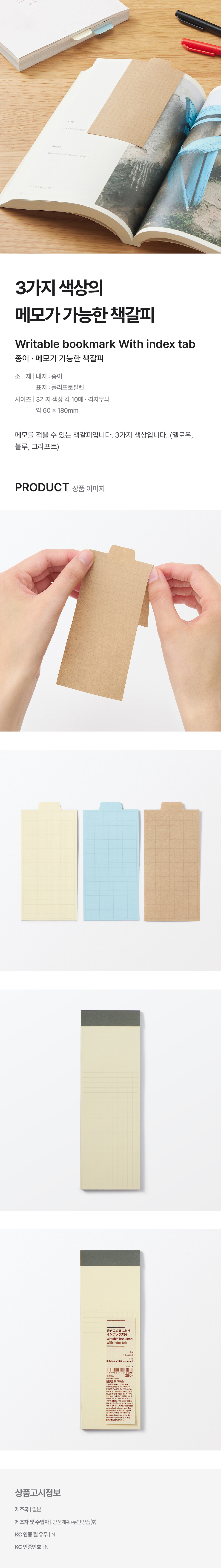 ●사용하는 펜이나 잉크에 따라 번지거나 뒷면에 비칠 수 있습니다. ●메모 작성 후에는 잉크를 완전히 말린 다음에 책갈피로 사용하십시오. 그렇지 않으면 오염이 생길 수 있습니다.