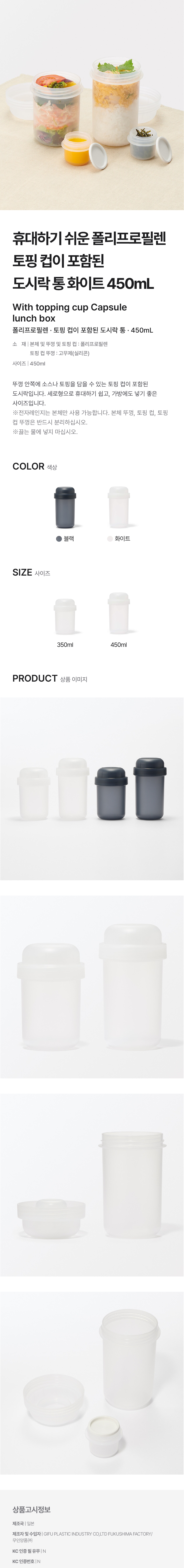 폴리프로필렌 토핑 컵이 포함된 도시락 통 · 450mL · 화이트/4547315844913