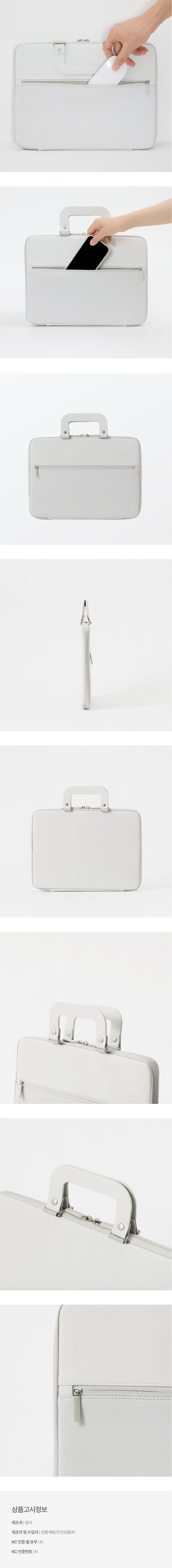 ●소재의 특성상 약간의 냄새가 나거나 구부린 후 표면에 미세한 줄이 생길 수 있으니 양해하여 주십시오. ●짙은 색상의 의류 등에 의해 이염될 수 있습니다. ●본래 용도 외에는 사용하지 마십시오. ●노트북 화면이나 케이스 손상을 방지하기 위해 열쇠나 전원 어댑터 등의 단단한 물건을 내부 수납 공간에 넣지 마십시오. ●3kg 이상의 물건을 넣지 마십시오. ●변형될 수 있으므로 세탁을 삼가십시오. ●표면이 오염된 경우, 희석한 중성 세제나 따뜻한 물을 적신 천으로 닦고 마른 천으로 마무리하여 건조시키십시오. ●오염된 경우 신속하게 닦으십시오. 자국이 남을 수 있습니다. ●직사광선 및 고온에 장시간 노출되지 않도록 주의하십시오. ●본체를 접거나 무거운 물건 밑에 깔지 마십시오.
