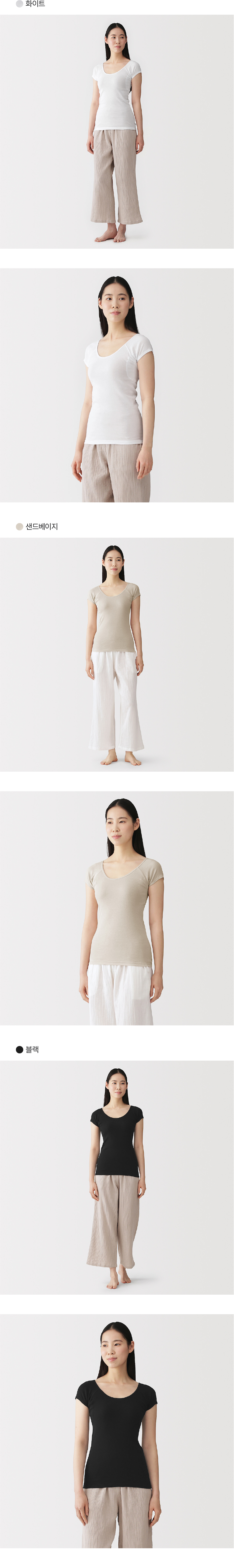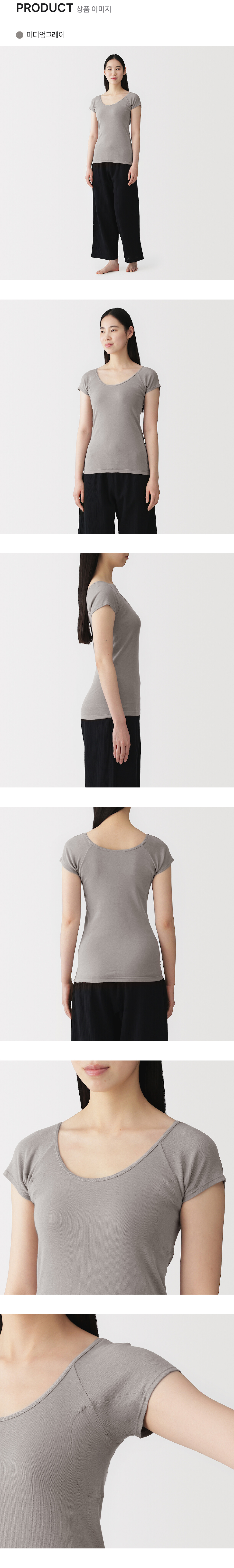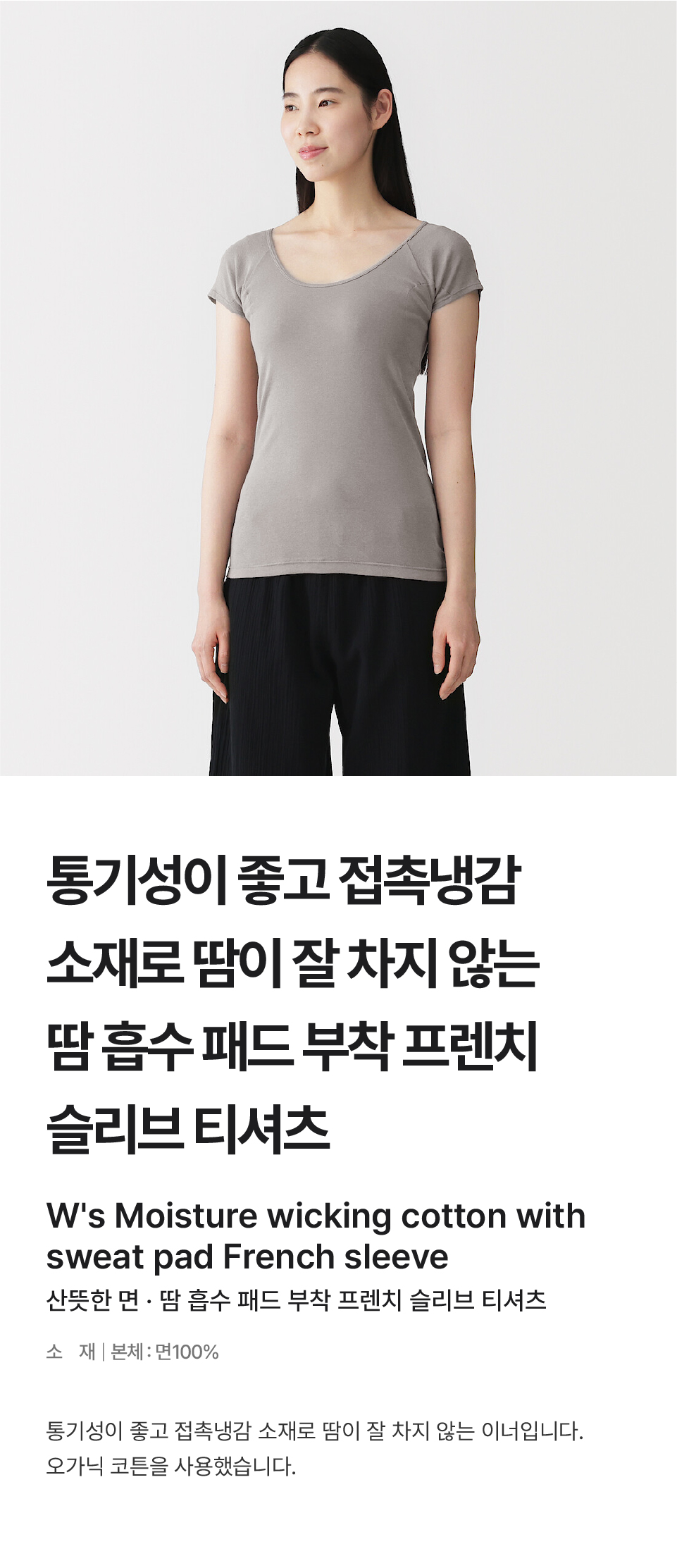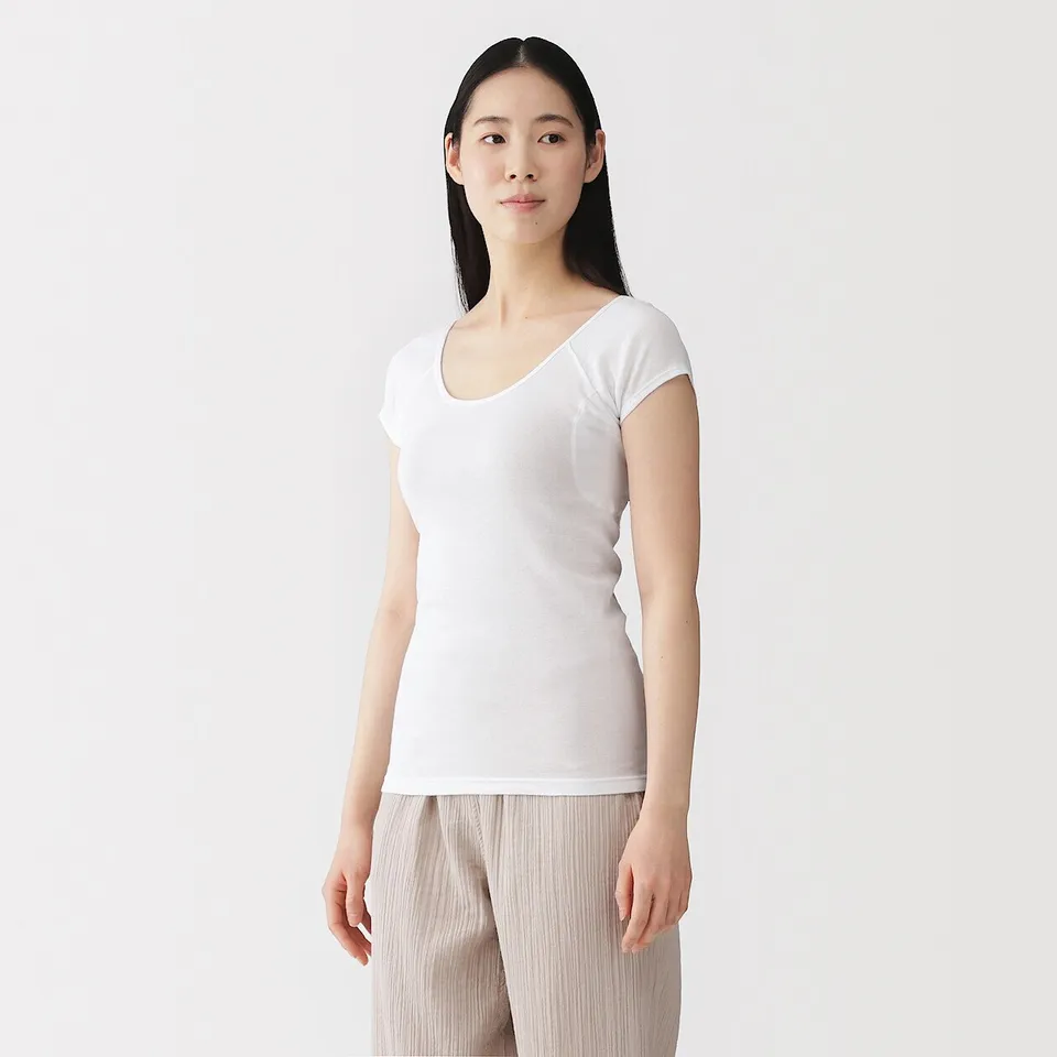 여성 산뜻한 면 땀 흡수 패드 부착 프렌치 슬리브 티셔츠/FCC11A6S