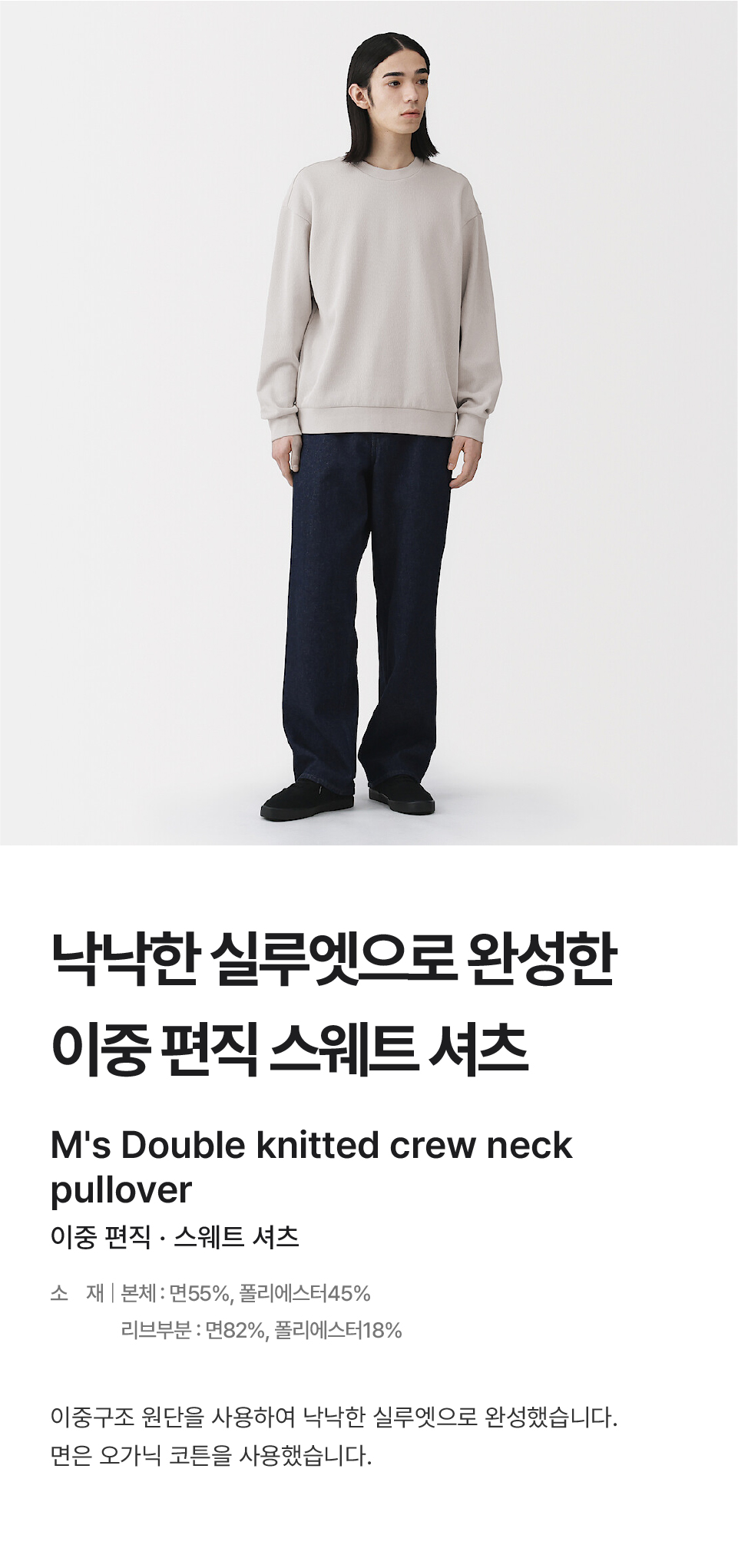 본체:면55%/폴리에스터45%,리브부분:면82%/폴리에스터18%