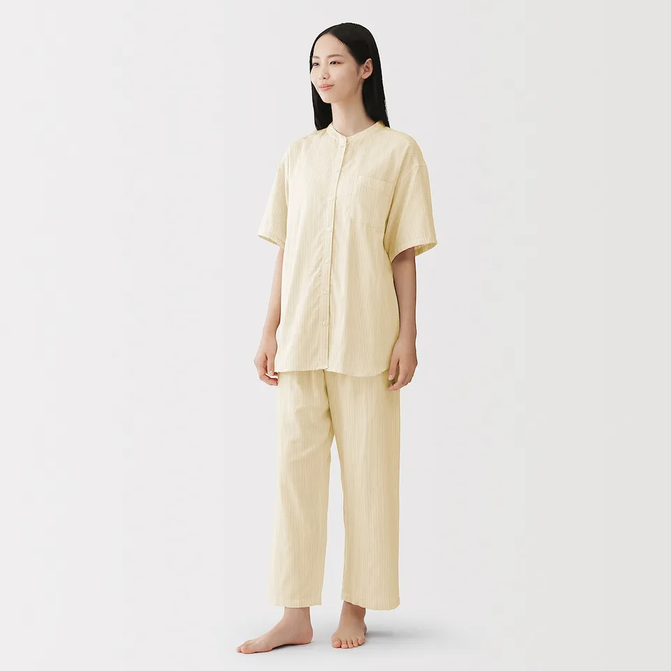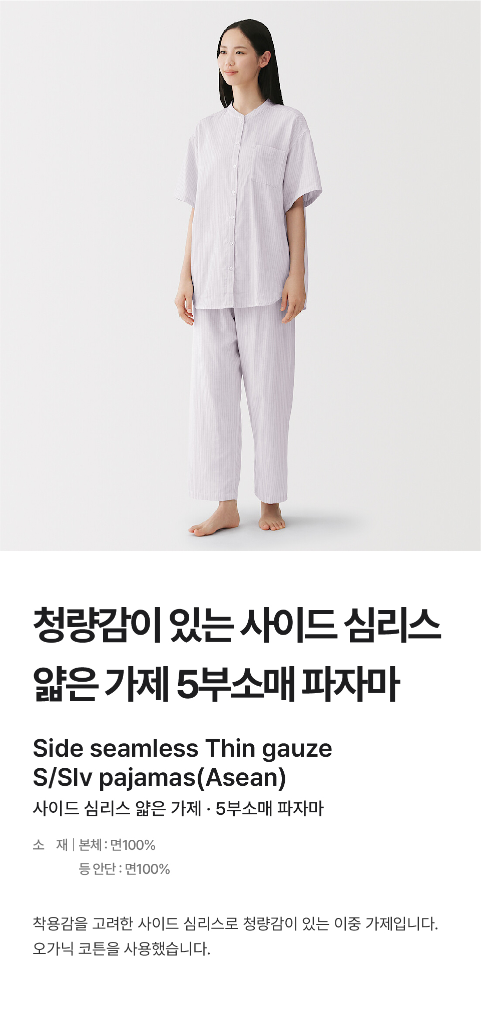 여성 사이드 심리스 얇은 가제 5부소매 파자마/FD1OFA6S