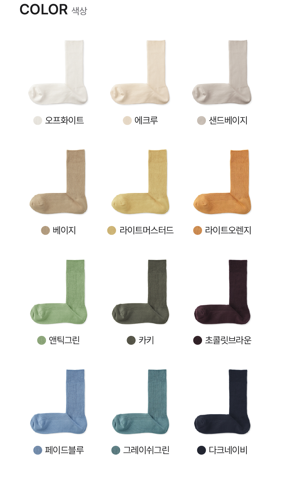 오프화이트,다크네이비,라이트머스터드,페이드블루,앤틱그린,카키,에크루,샌드베이지,베이지,초콜릿브라운,라이트오렌지,그레이쉬그린