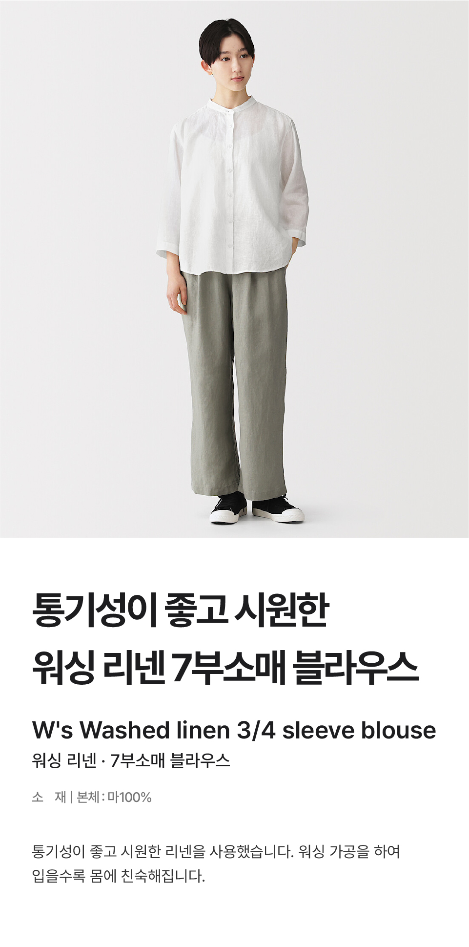 워싱 리넨 7부소매 블라우스/BC2PWA6S