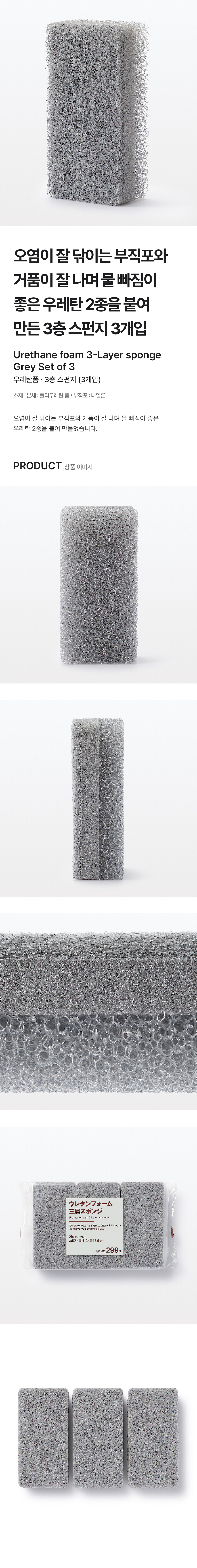 우레탄폼 3층 스펀지 (3개입) · 그레이 약 6x12x3.5cm/4550512975038