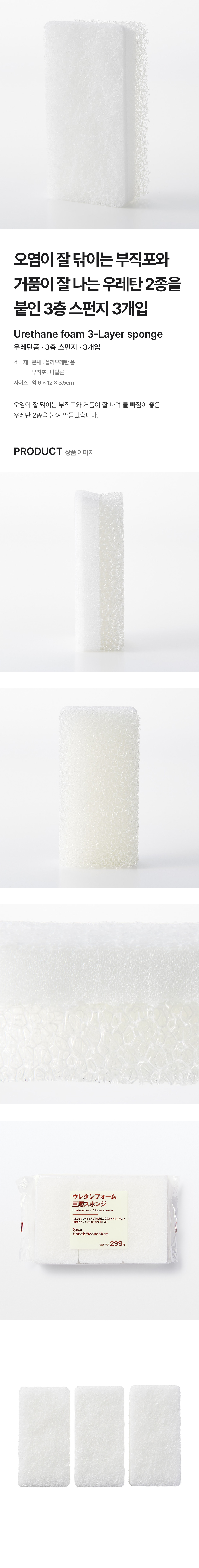 우레탄폼 3층 스펀지 (3개입) · 화이트 약 6x12x3.5cm/4550344316634