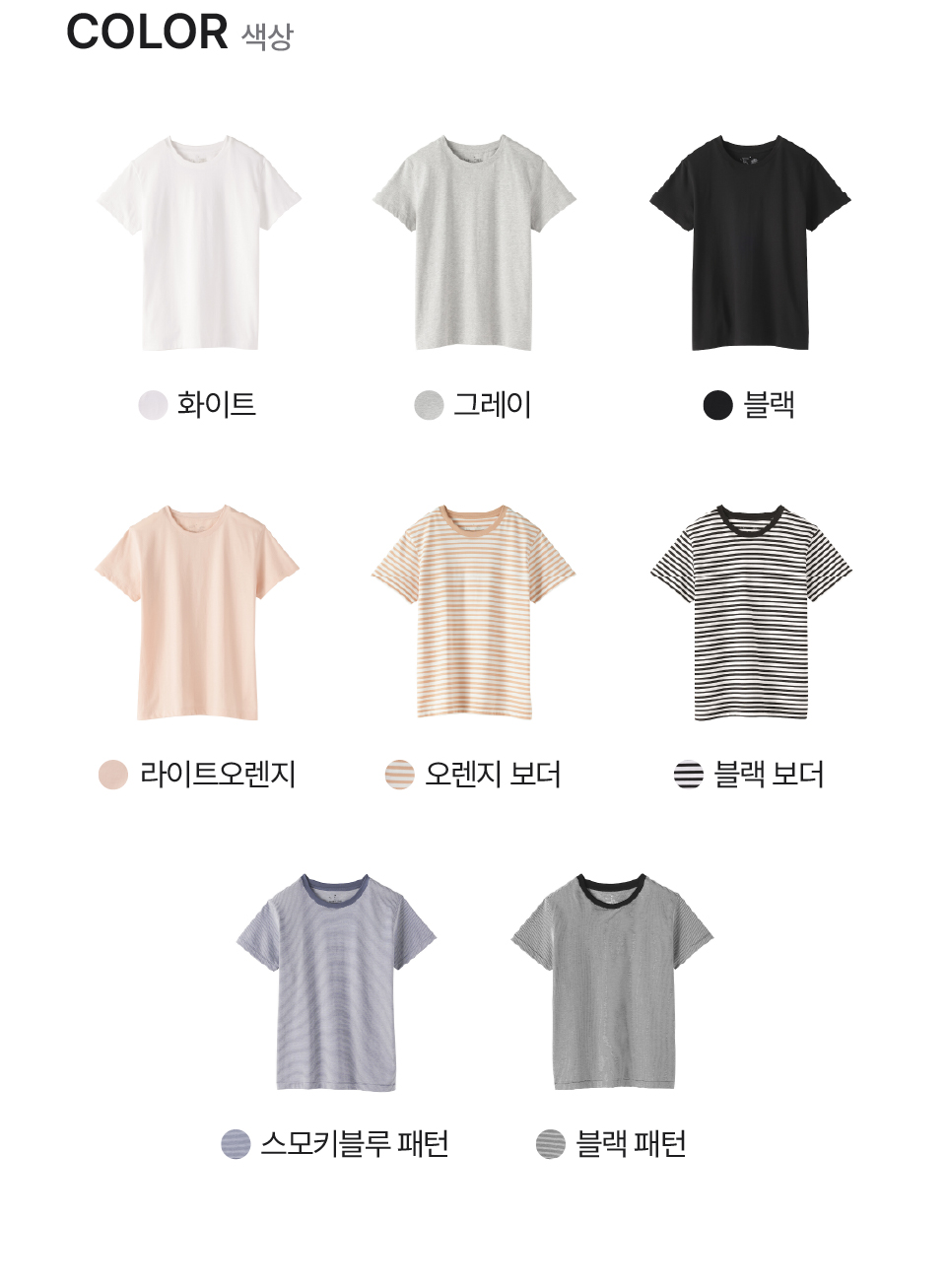 화이트,스모키블루 패턴,블랙 패턴,블랙 보더,오렌지 보더,라이트오렌지,블랙,그레이