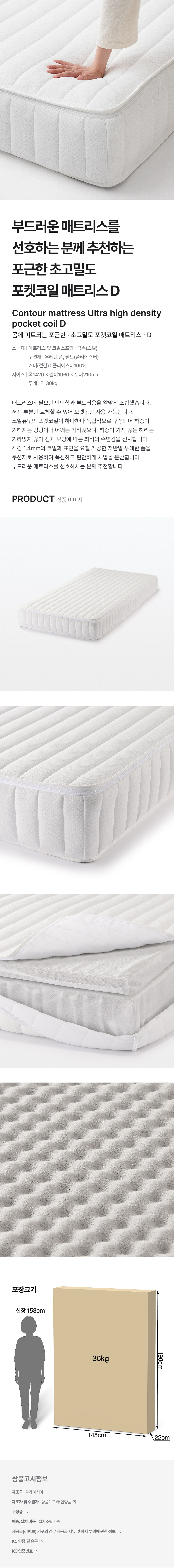 몸에 피트되는 포근한 초고밀도 포켓코일 매트리스ㆍD/4550584434426