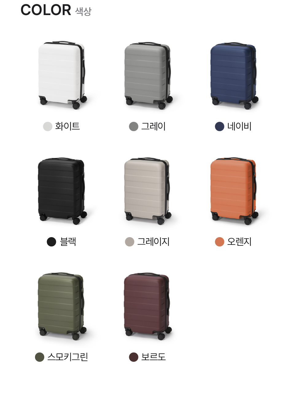 그레이,블랙,오렌지,네이비,보르도,화이트,스모키그린,그레이지