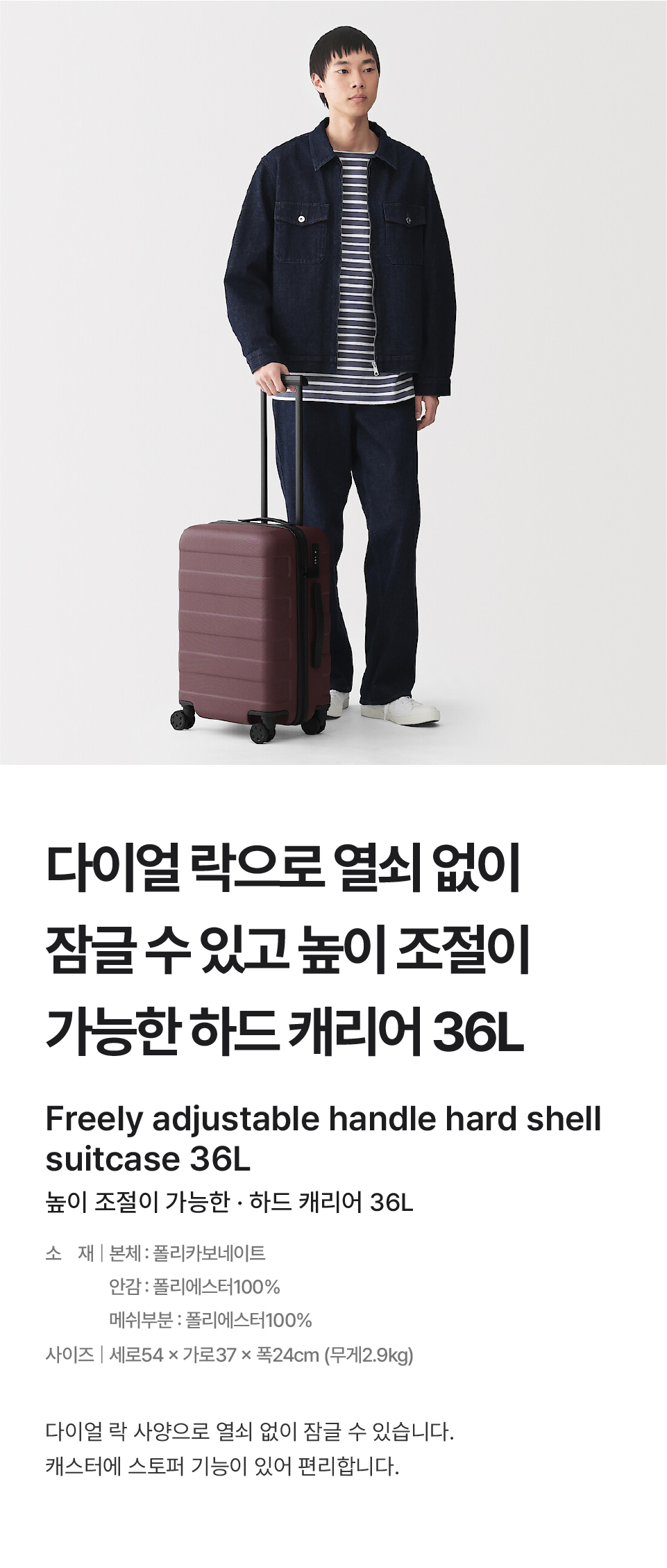 높이 조절이 가능한 하드 캐리어 36L/EE0HXA6S