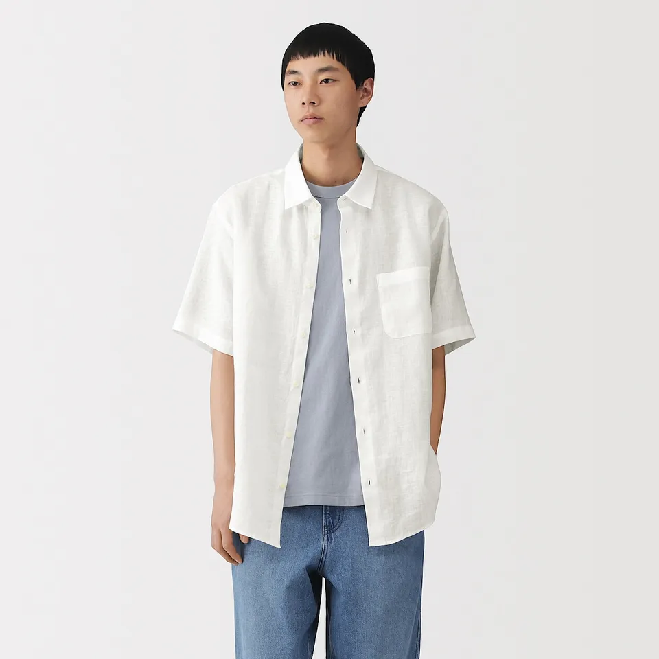 워싱 리넨 레귤러 칼라 반소매 셔츠/AC1ZXA6S