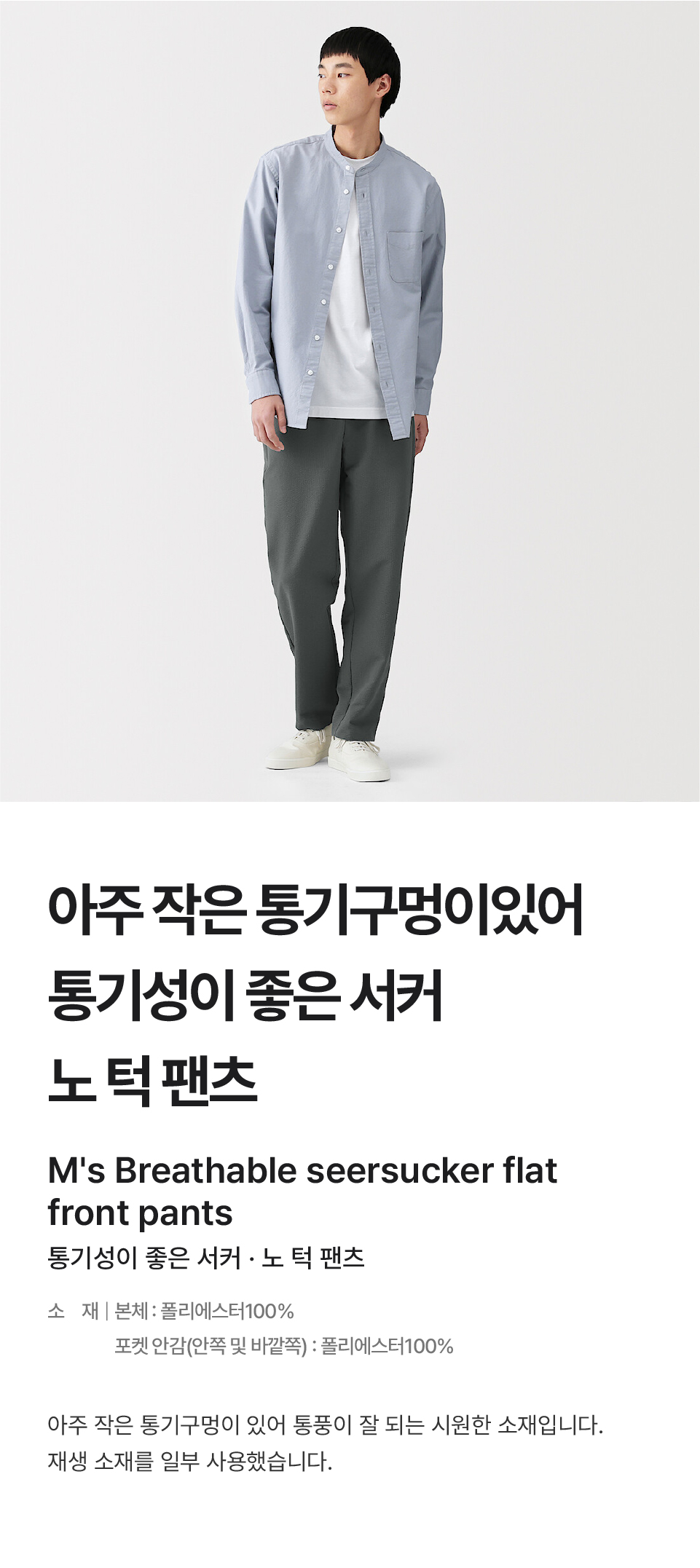 통기성이 좋은 서커 노 턱 팬츠/AE0Z6A6S