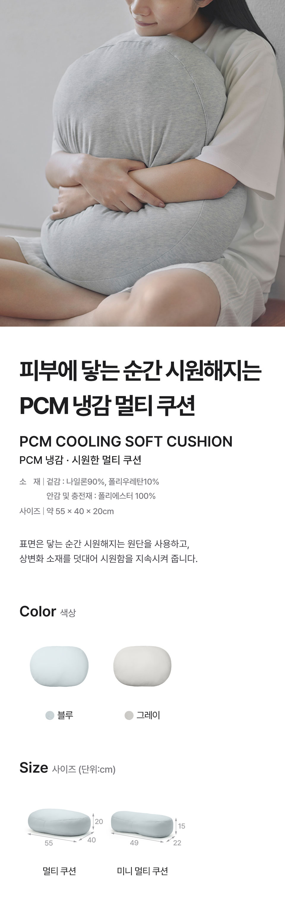 PCM 냉감 시원한 멀티 쿠션 그레이 약 55x40x20cm/4548076423997
