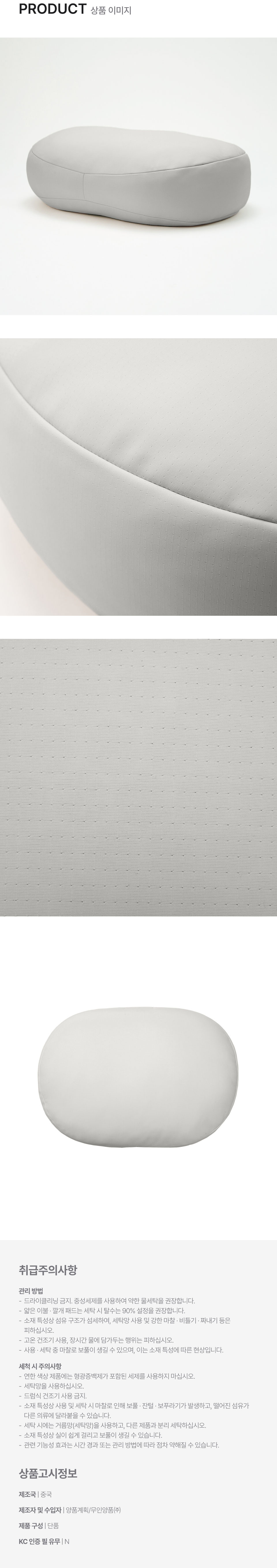 ●염소계 세제와 표백제를 사용하지 마십시오. ●소재 특성상 화학적 변화로 인해 색상이 변할 수 있습니다. ●연한 색상의 제품을 세탁할 때는형광 증백제가 함유된 세제를 사용하지 마십시오. ●세탁기 고장이나 사고를 방지하기 위해 사용 중인 세탁기의 상세 사양을 반드시 확인하십시오. ●가정용 세탁기로 세탁할 수 없는 경우, 전문 세탁업체에 문의하십시오. ●세탁기 사용 시 세탁하기 전에 제품을 담가 두십시오. ●주의: 3분 이상 탈수하면 충전재가 빠져나올 수 있습니다. ●건조기를 사용하지 마십시오. ●소재 특성상 솔기 등에서 충전물의 섬유가 나올 수 있습니다. 문지르거나 두드리는 등의 압력으로 인해 튀어 나오기 쉬워지므로 주의하시기 바랍니다. ●소재의 특성상, 섬유가 걸리지 않도록 주의하십시오. ●소재의 특성상, 접촉 시의 냉감 효과는 세탁할수록 점차 감소합니다.
