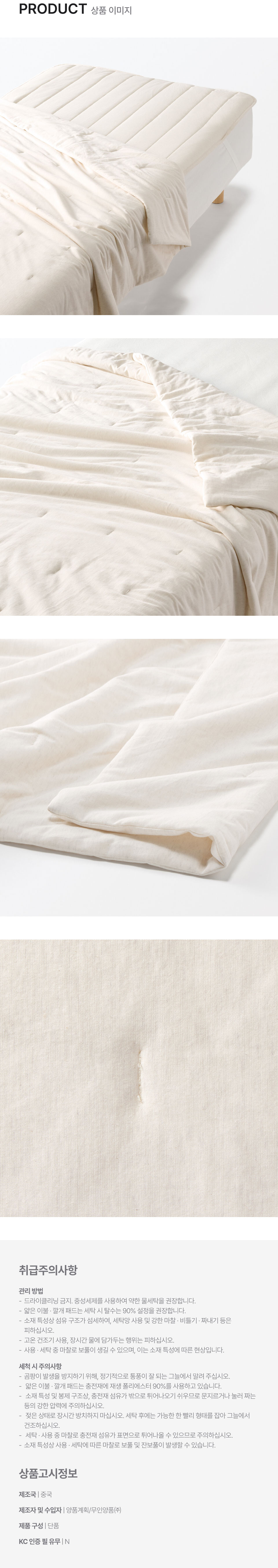 겉감:면100% 충전재:폴리에스터 100%