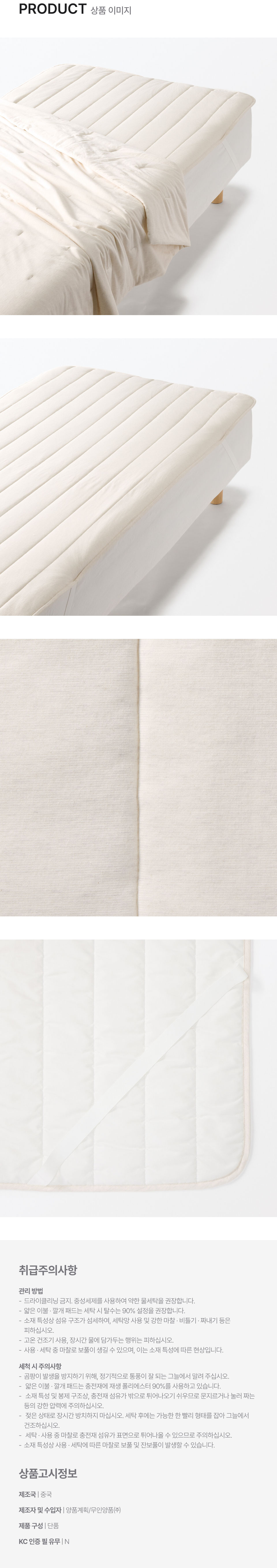●이 상품은 충전재에 재생 폴리에스터를 90% 사용했습니다. ●연한 색상 제품에는 형광증백제가 포함된 세제를 사용하지 마시기 바랍니다. ●세탁 가능한 세탁기의 용량(기준): 세탁기 파손이나 사고를 방지하기 위해 [세탁기의 용량, 세탁방법] 에 관해서는 세탁기의 사용설명서에 따라 주시기 바랍니다. 또한 가정 내의 세탁기로 세탁할 수 없는 경우 클리닝 전문점에 상담하여 주시기 바랍니다. ●세탁기로 세탁할 경우 물을 주입한 후 세탁조 내에 잘 가라앉혀 물을 머금게 한 다음에 세탁하십시오. ●주의: 3분 이상의 탈수는 충전물이 빠져나오는 원인이 될 수 있으니 삼가 주시기 바랍니다. ●진드기 및 곰팡이를 방지하기 위해 정기적으로 통풍이 잘 되는 그늘진 곳에서 말려 주십시오. ●소재 특성상 솔기 등에서 충전물의섬유가 나올 수 있습니다. 문지르거나 두드리는 등의 압력으로 인해 튀어 나오기 쉬워지므로 주의하시기 바랍니다. ●짙은 색상 제품은 사용 중 마찰이나 젖은 상태에서의 접촉으로 이염될 수 있