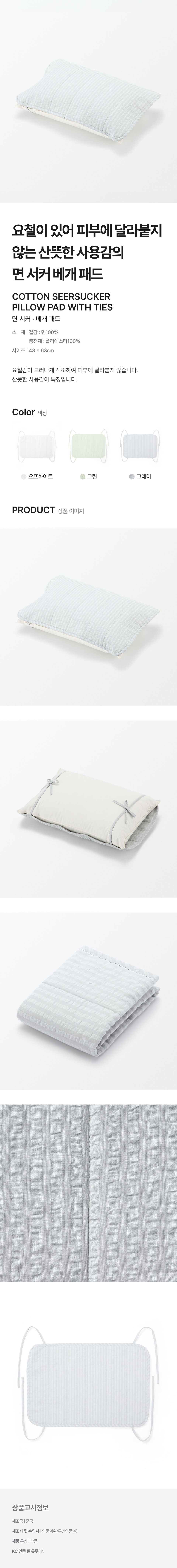 면 서커 베개 패드 그레이 43x63cm 용/4548076196143