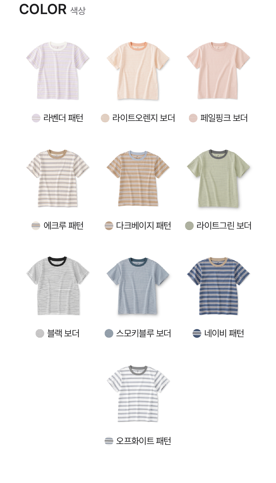 에크루 패턴,오프화이트 패턴,블랙 보더,네이비 패턴,다크베이지 패턴,라벤더 패턴,스모키블루 보더,라이트그린 보더,라이트오렌지 보더,페일핑크 보더