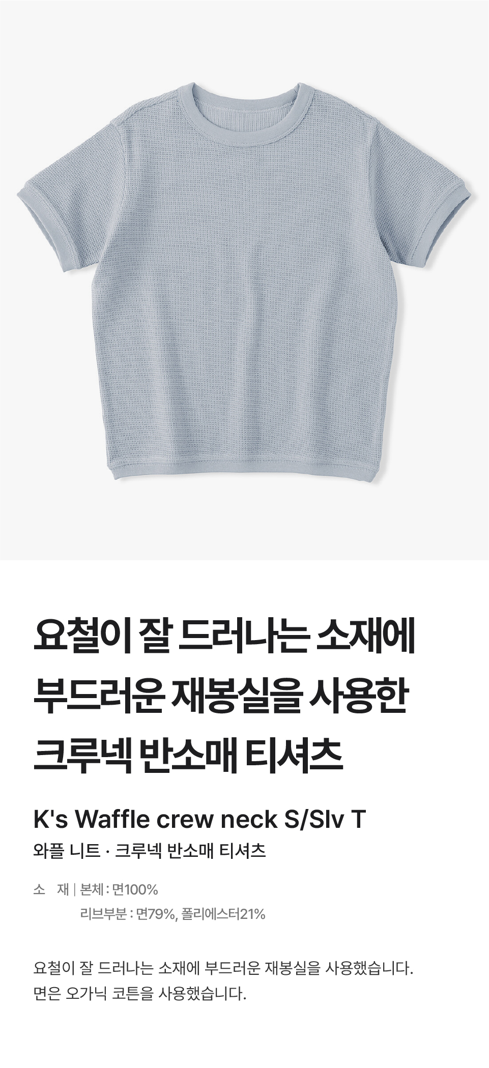 키즈 와플 니트 크루넥 반소매 티셔츠/CB1RYA6S