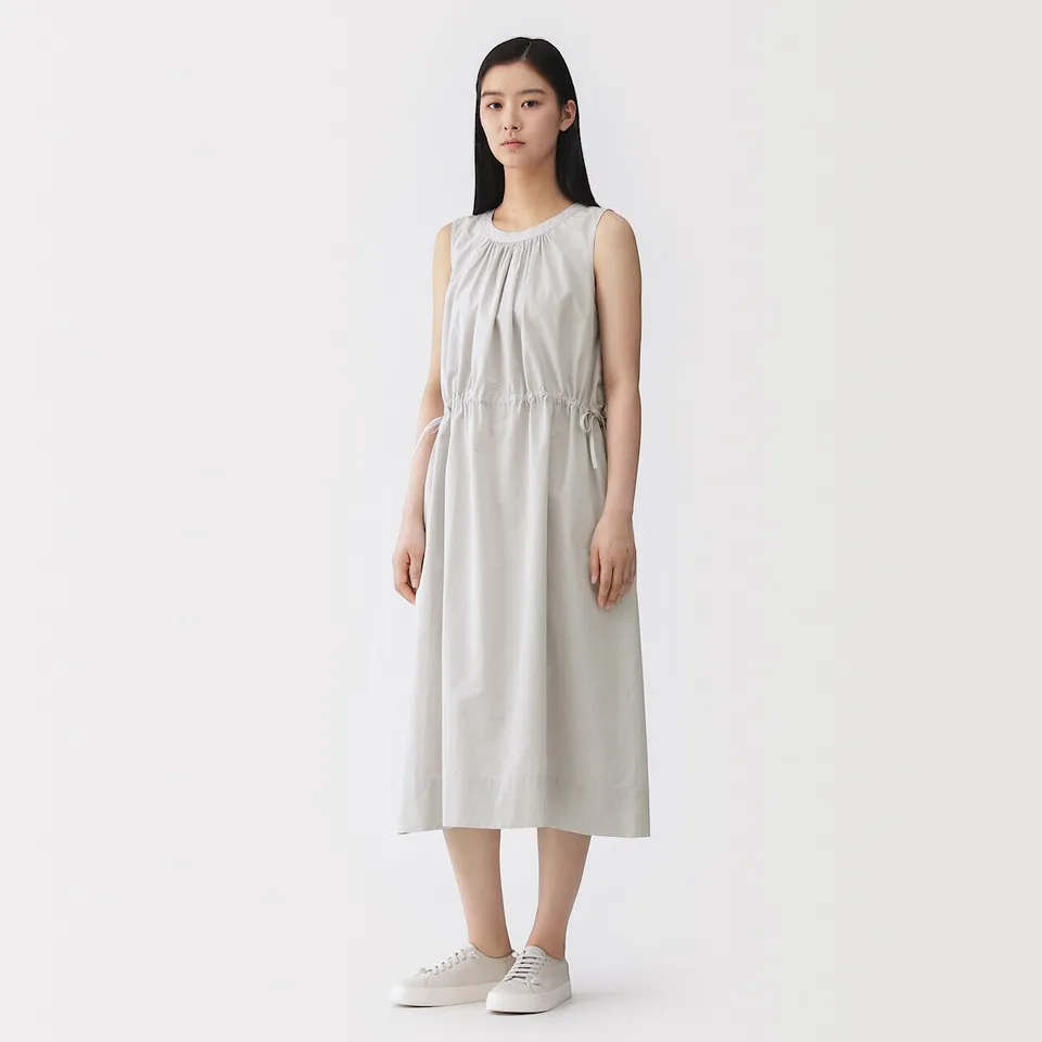 와시 혼방 고밀도 포플린 슬리브리스 개더 원피스/AF0FDA6S