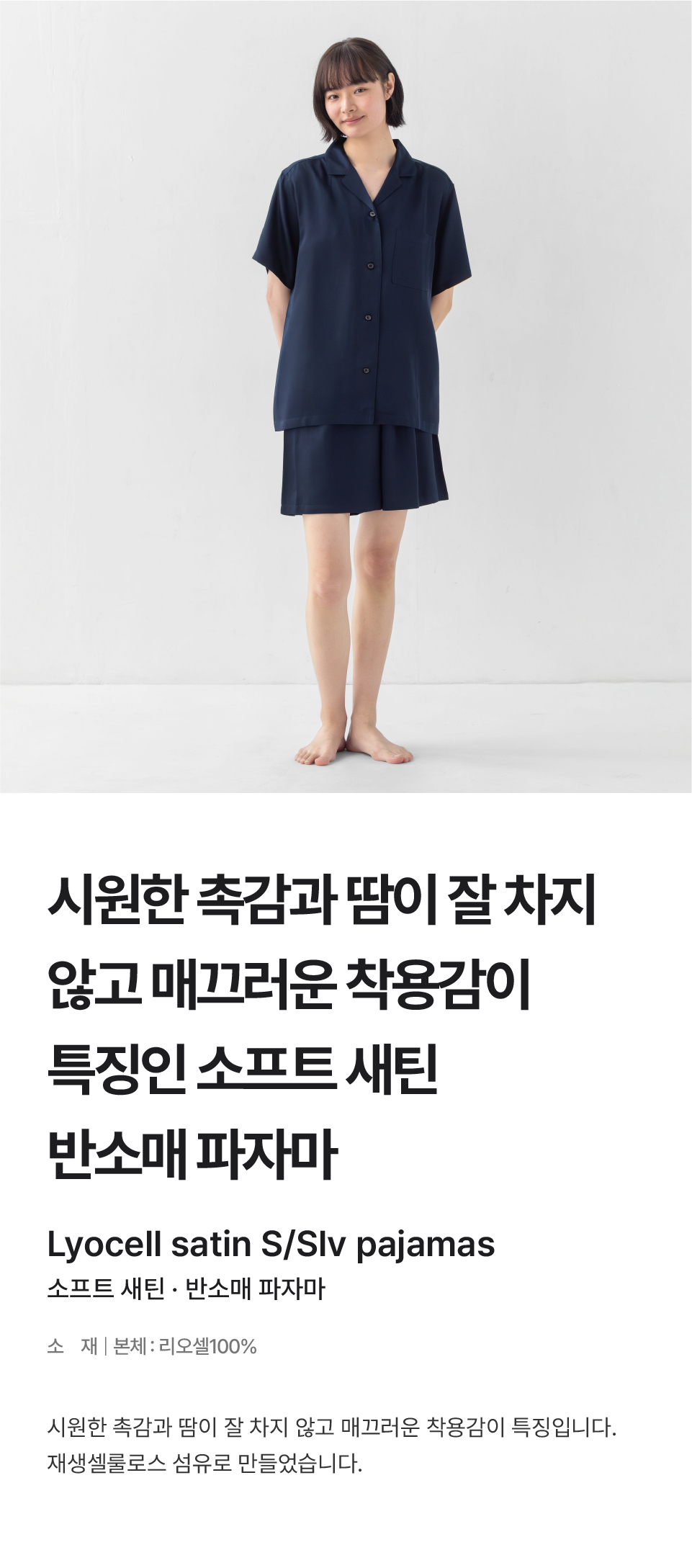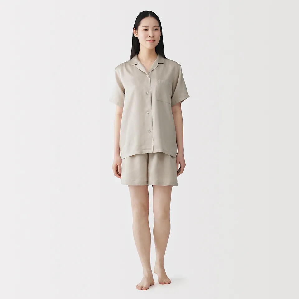 여성 소프트 새틴 반소매 파자마/FD1N9A6S