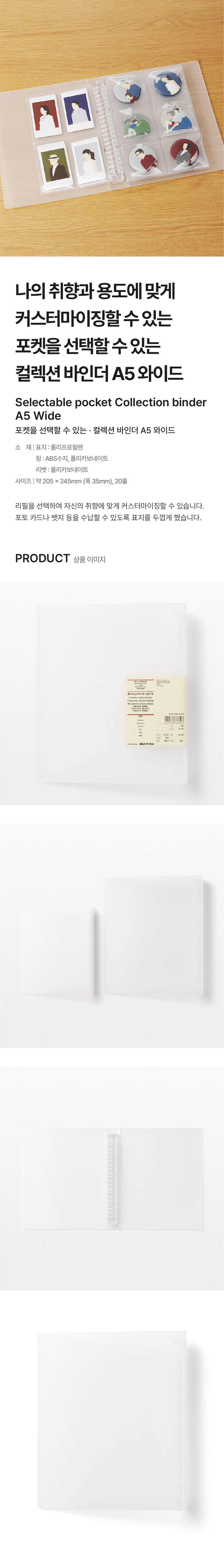 포켓을 선택할 수 있는 컬렉션 바인더 A5 와이드 20홀/4550583766696