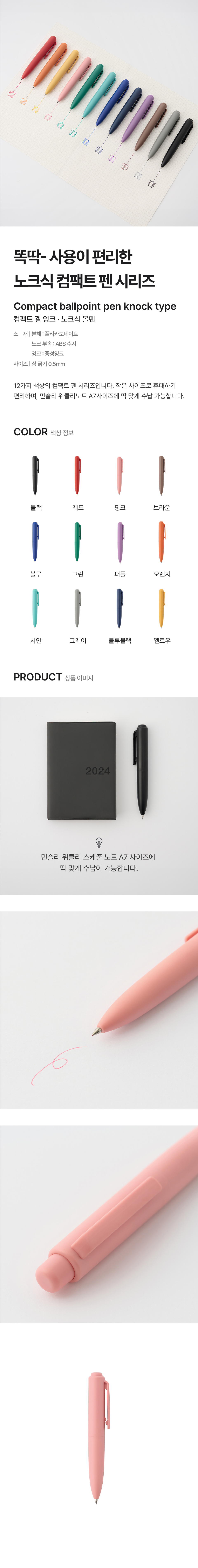 컴팩트 겔 잉크 노크식 볼펜 핑크 0.5mm/4550583693299