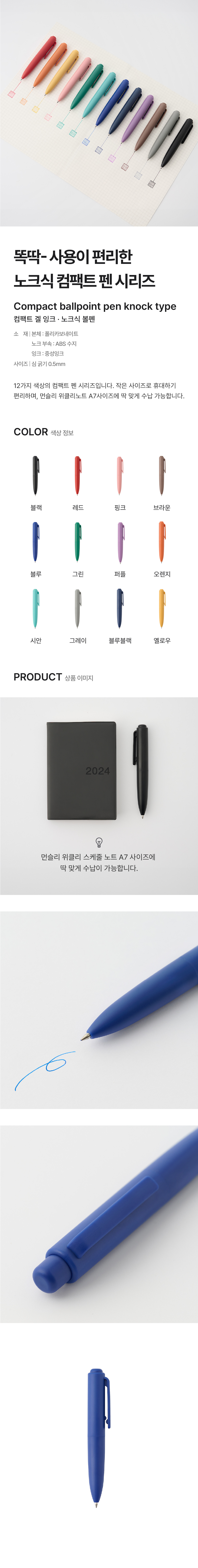 컴팩트 겔 잉크 노크식 볼펜 블루 0.5mm/4550583693312