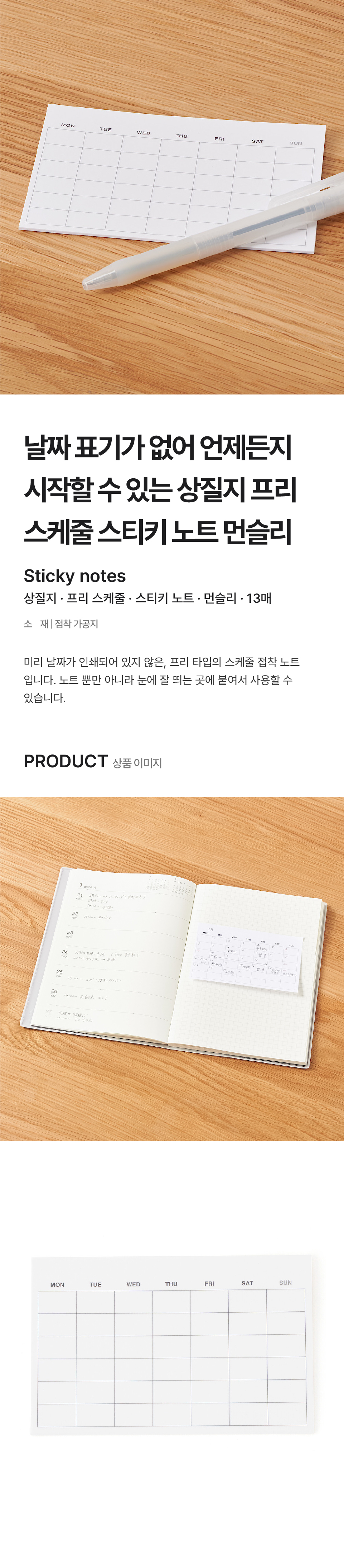 상질지 프리 스케줄ㆍ스티키 노트 먼슬리ㆍ13매/4550182603149