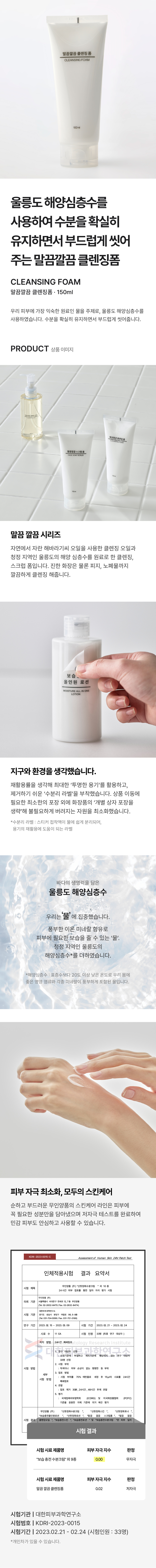 해수(울릉도해양심층수), 글리세린, 포타슘미리스테이트, 정제수, 메틸프로판다이올, 미리스틱애씨드, 포타슘스테아레이트, 포타슘코코에이트, 포타슘라우레이트, 글리세릴스테아레이트, 팔미틱애씨드, 라우릭애씨드, 병풀추출물, 무화과추출물, 하이드로제네이티드레시틴, 스테아릭애씨드, 솔비탄올리베이트, 포타슘코코일 글리시네이트, 소듐파이테이트, 베타-글루칸, 이디티에이, 세라마이드엔피, 1,2-헥산다이올, 에틸헥실글리세린