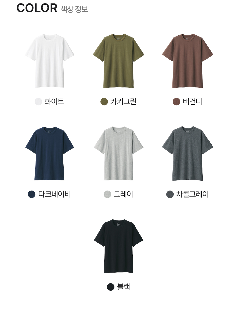 화이트,그레이,차콜그레이,블랙,버건디,카키그린,다크네이비