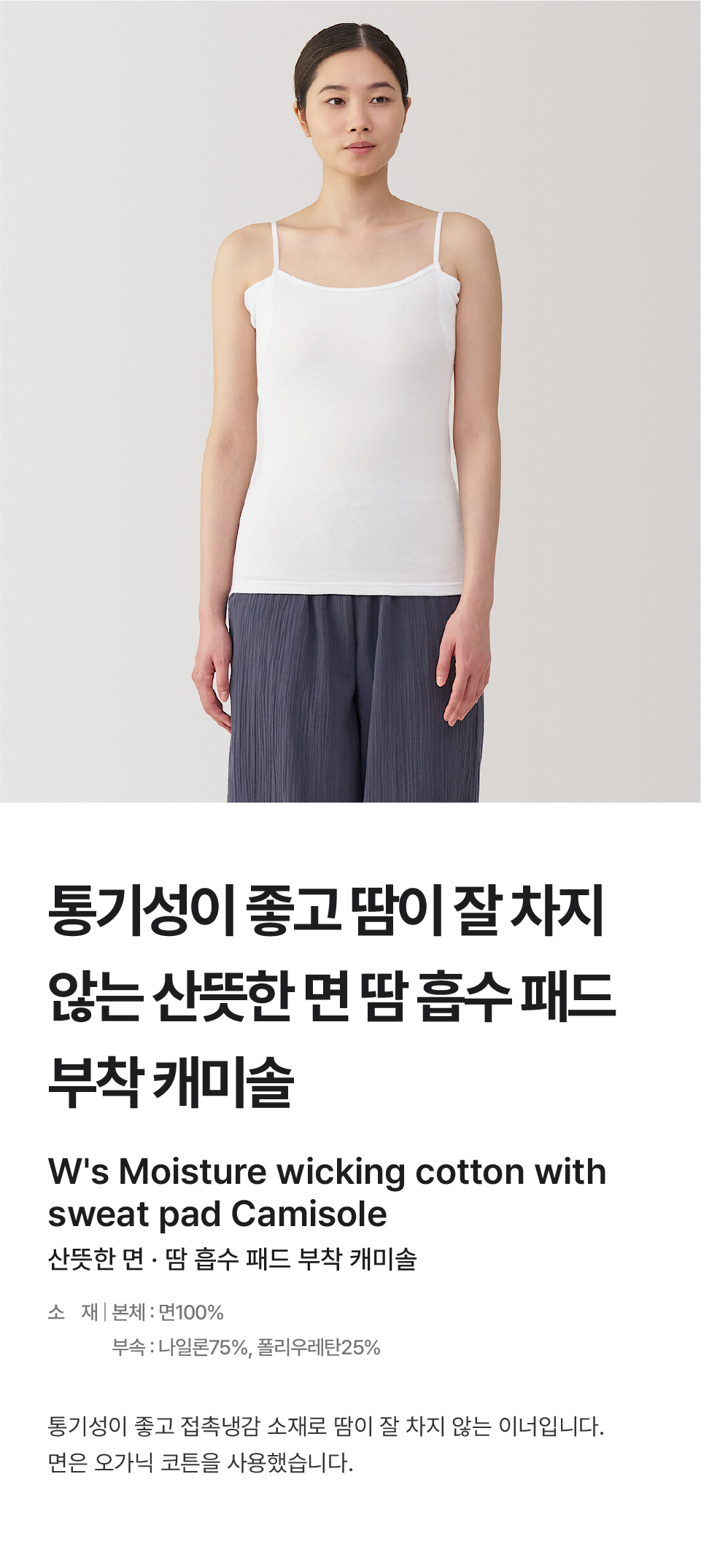 산뜻한 면 땀 흡수 패드 부착 캐미솔/FCA11A5S